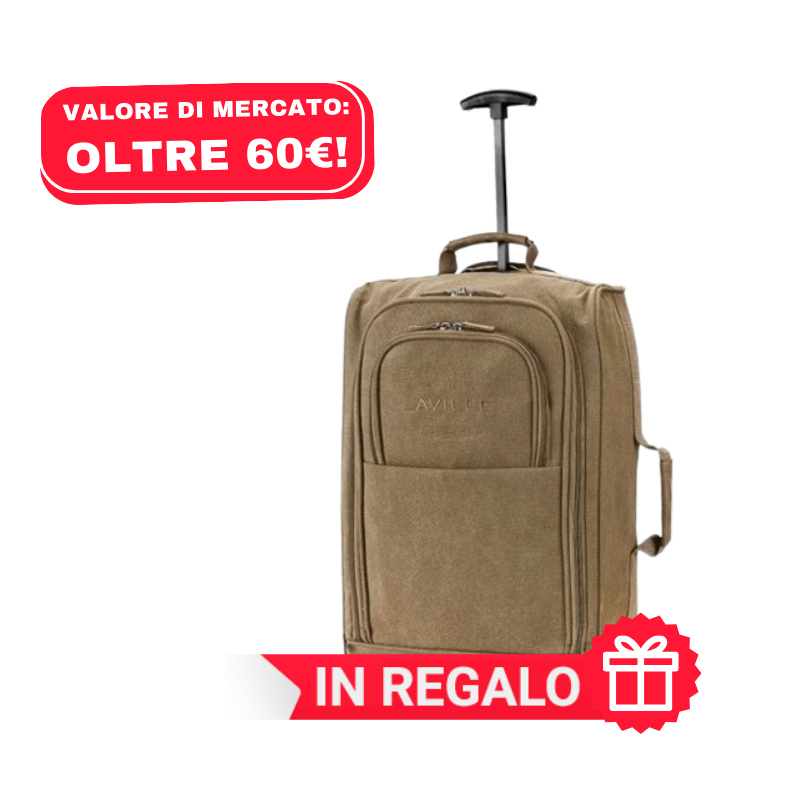 Un trolley in cotone con rifiniture in ecopelle